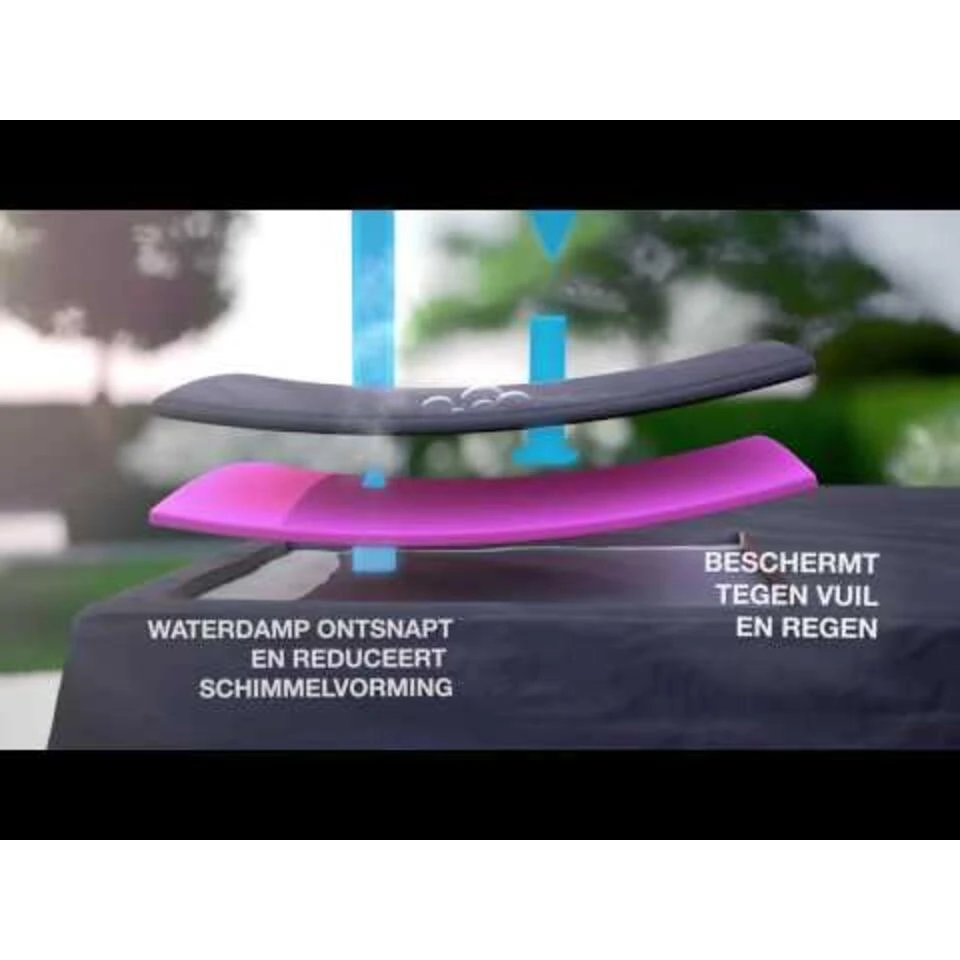 Met de AeroCover geniet u nog langer van uw loungeset. Deze stevige hoes beschermt de set tegen alle weersinvloeden. De hoes is waterdicht en UV-bestendig waardoor de tuinmeubels optimaal beschermd worden. De hoes is vervaardigd uit sterk polyester en voorzien van ademend membraan. Vocht wordt daardoor naar buiten getransporteerd waardoor er geen kans is op schimmelvorming. Dit is een belangrijk voordeel ten opzichte van PVC of PU hoezen. Een stevige hoes van uitstekende kwaliteit!