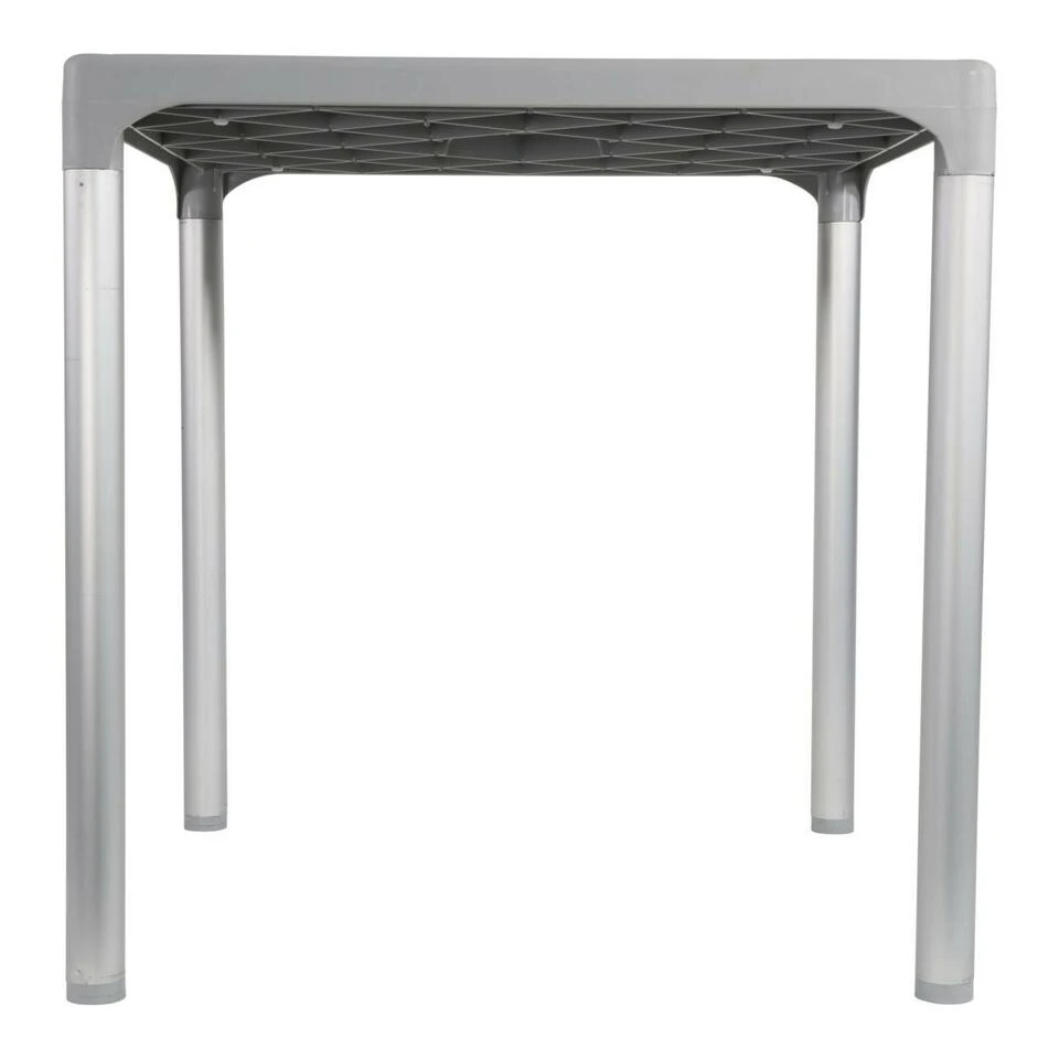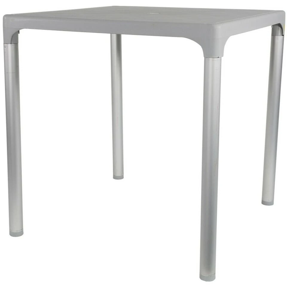 Met deze Bella terrastafel voegt u gegarandeerd een vrolijke en moderne sfeer toe aan vrijwel iedere buitenruimte. Deze tafel bestaat uit vier aluminium poten en een grijs kunststof tafelblad. Dankzij het gebruik van deze materialen is deze tafel onderhoudsarm. Deze tafel is tevens eenvoudig uit elkaar te halen, waardoor hij gemakkelijk kan worden opgeborgen. Terrastafel Bella is ook verkrijgbaar in het wit. Combineer deze terrastafel ook met de matchende Bella terrasstoelen, welke verkrijgbaar zijn in acht verschillende kleuren!