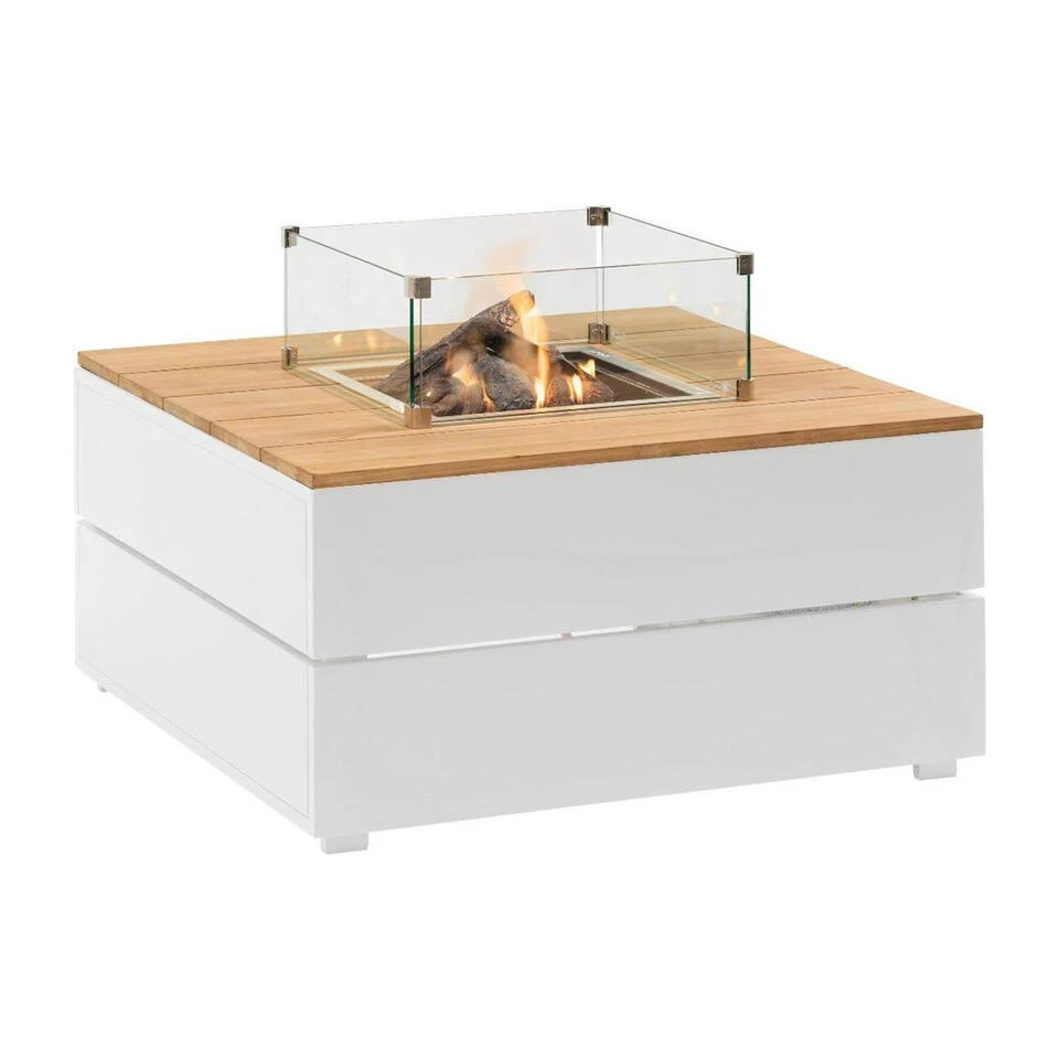 Ook op minder warme zomerdagen of tot laat in de avond lekker comfortabel buiten zitten? Maak jouw lounge compleet met de Cosipure vuurtafel 100 x 100 cm wit met teakhouten blad.
