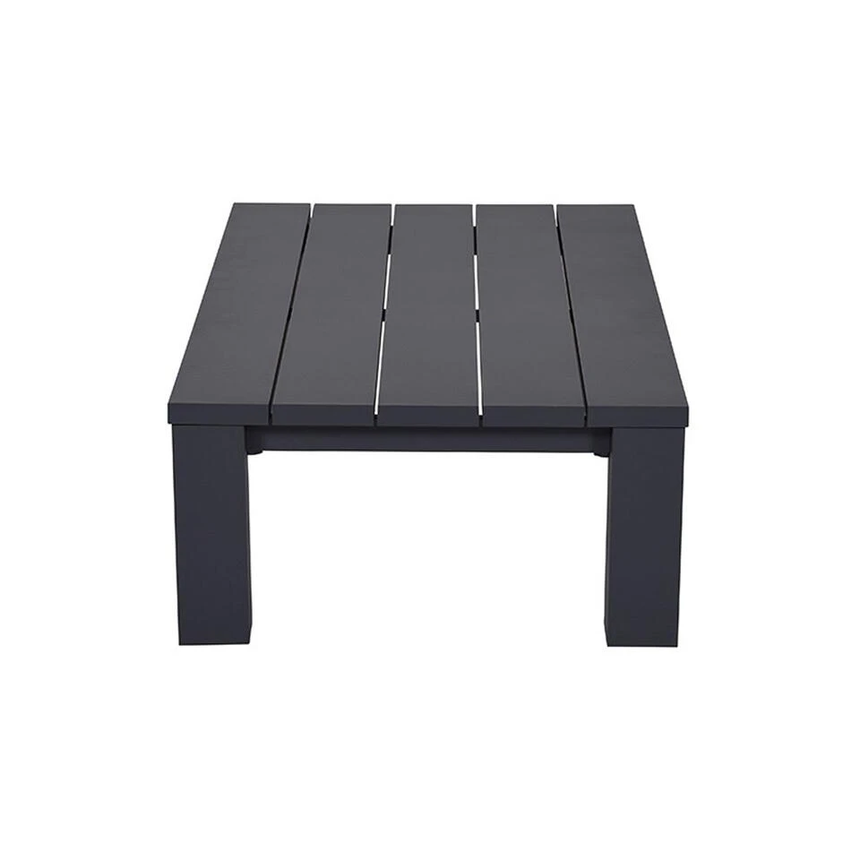De Plaza serie is leverbaar met een witte of donker grijze coating. De afmeting van de lounge tafel: L 100 x B 100 x H 30 cm. Gemaakt van aluminium met een poedercoating in de kleur carbon black.
