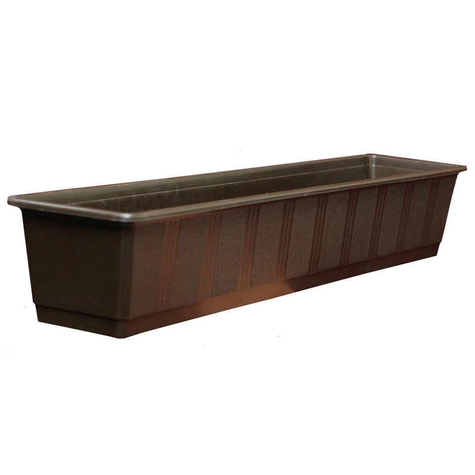Plantenbak bruin rechthoekig 80 x 17,5 x 14,5 cm. Materiaal: polypropyleen (plastic/kunststof). Bloembakken/plantenbakken/plantenpotten voor binnen en buiten.