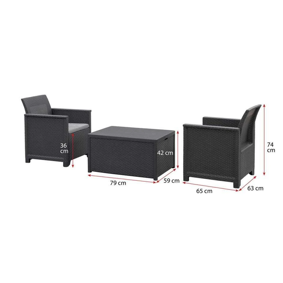 Keter Loungeset Emma Met Opbergbox – Grijs – 3-delig