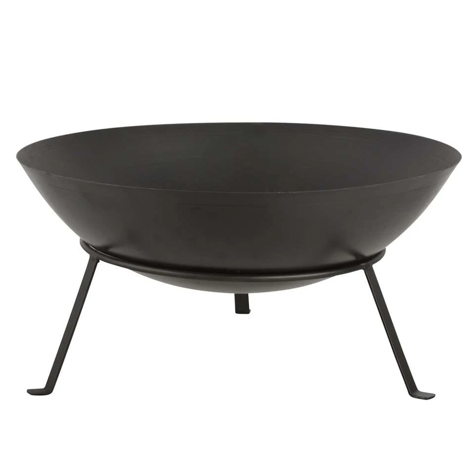Zwarte vuurschaal op poten 49 cm. Zwarte tuin vuurschaal met los onderstel heeft een formaat van ca. 49,5 x 49,5 x 24,5 cm en is gemaakt van metaal. Door het afwateringsgat onderin de schaal zal er geen regenwater in blijven staan. Wordt geleverd exclusief hout.
