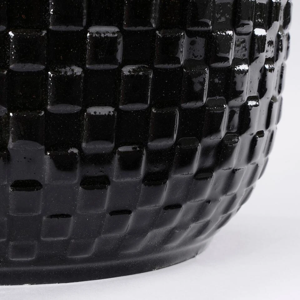 Bloempot Daan uit de collectie van Mica Decorations fleurt je interieur in een mum van tijd op. De keramieken pot is namelijk speels afgewerkt met een patroon van kleine vierkantjes. Erg mooi in combinatie met de subtiele glans! De zwarte kleur geeft hier een stoere draai aan. Welke plant je er ook in zet; in deze pot komt alles goed tot zijn recht. De Daan potten zijn verkrijgbaar in verschillende kleuren en maten. Leuk om met elkaar te combineren! Deze bloempot is zwart en heeft een afmeting van H20,5 x Ø21,5 cm.
