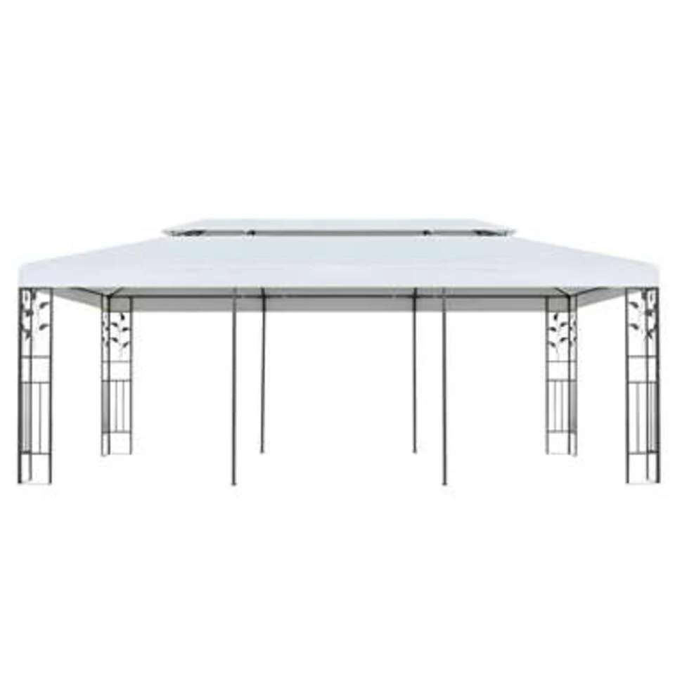Dit tuinpaviljoen zorgt ervoor dat de zon en de regen het plezier niet bederven tijdens familieaangelegenheden, barbecues, picknicks en verjaardagsfeestjes. De partytent heeft een gepoedercoat stalen frame moet bloemendetails en het polyester dak met PA-coating maakt de tent uv- en waterbestendig. De overkapping heeft verstevigde hoeken en klittenband waarmee hij eenvoudig aan het frame kan worden bevestigd.
